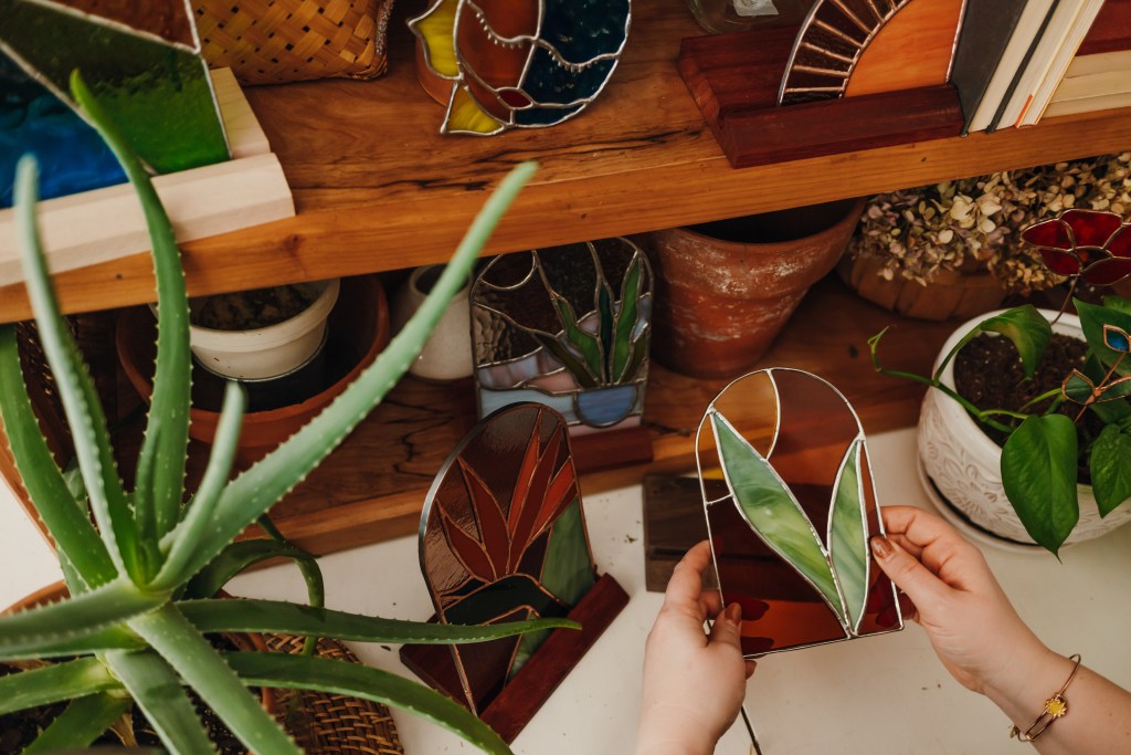 For me, the process of designing and crafting a stained glass piece is a practice in healing. If you follow my blog, you’ll discover my art is my companion through grief. I’ve found solace through stained glass and my hope is to share that tranquility with whoever may need it— whoever may be going through something difficult, impossible, or dark. I hope my art can be your companion and bring a bright light into your home.